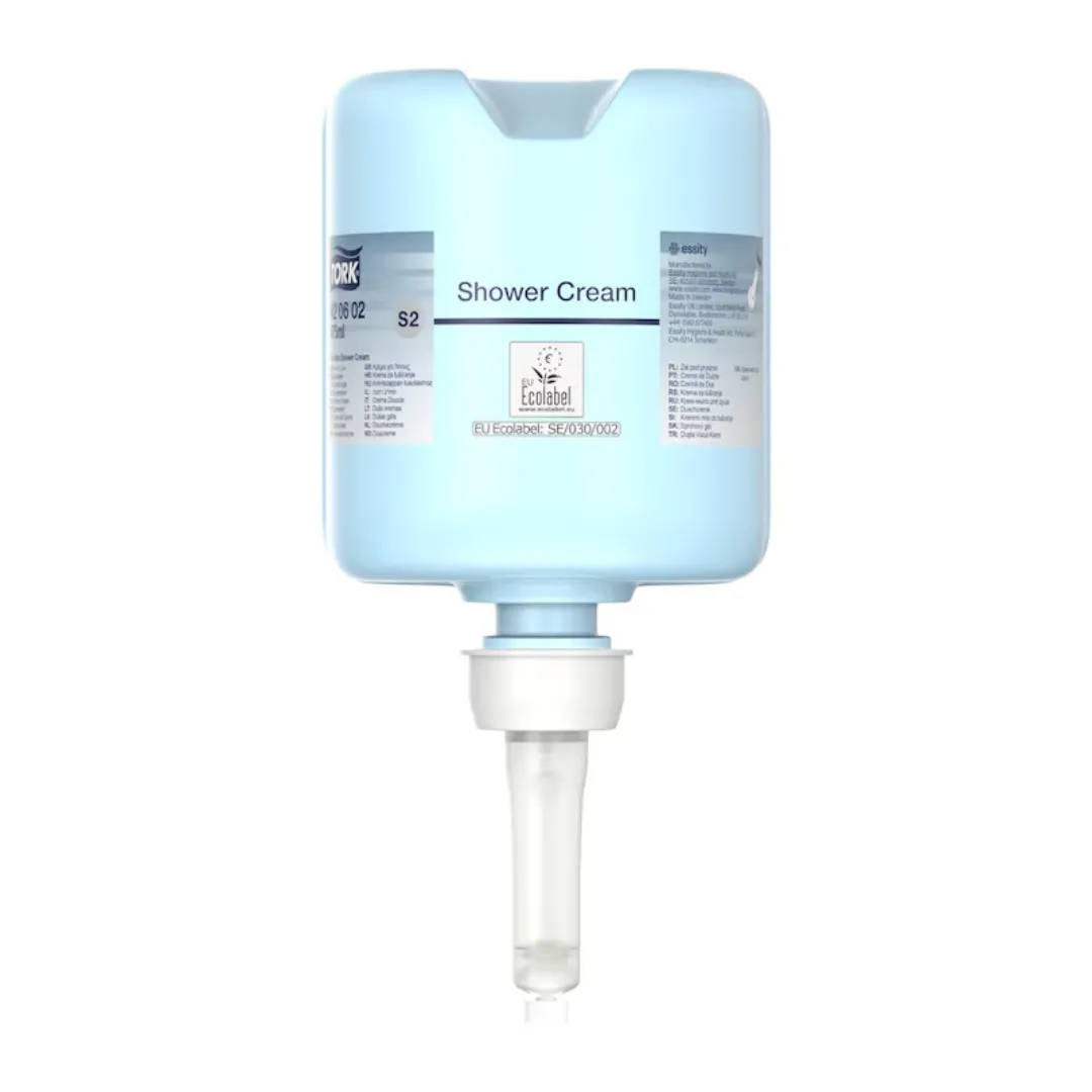 קרם רחצה Tork Shower Cream דגם 420601 למערכת S1. קרם רחצה עדין עם ניחוח רענן, מתאים לגוף ולשיער ומיועד למלונות, חדרי כושר ומתקני ספורט.