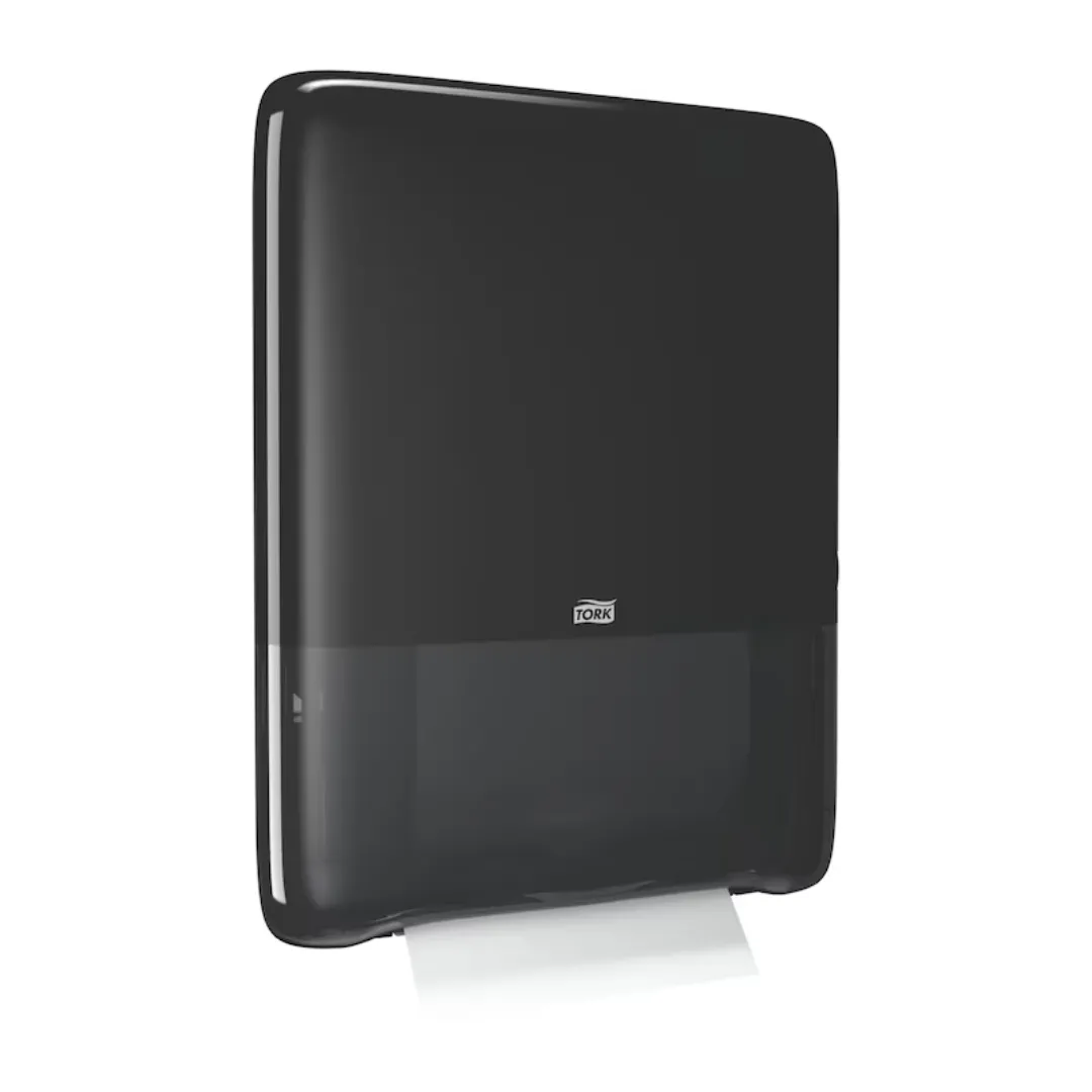 מתקן מגבות הנייר Tork PeakServe Mini 552558 בצבע שחור מביא את הדור הבא של פתרונות ההיגיינה למקומות עם עומס גבוה – תוך חיסכון במקום ושיפור חוויית המשתמש.